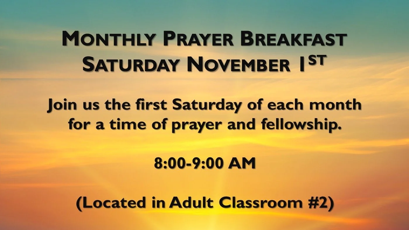 Join us the first Saturday of every month for prayer, fellowship and a light breakfast.