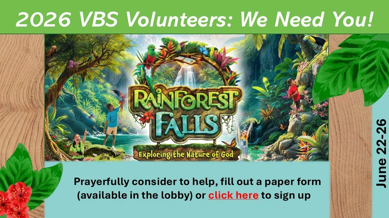 VBS is a wonderful opportunity to tell children in our community about Jesus, and we would love you to be a part of it! Please prayerfully consider being a part of this amazing adventure.